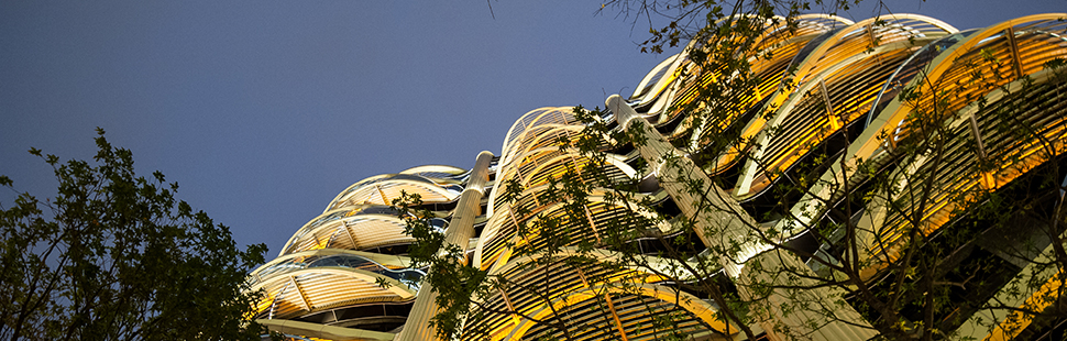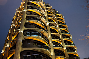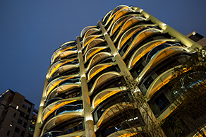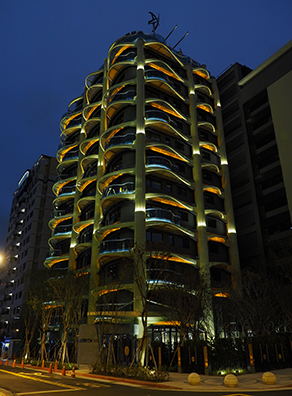 晴空树位于内湖五期重划区,建筑设计理念为大地、枝干、云朵,象征着城市之树倡导着永续的绿色议题,外观建材皆采用绿建筑专用节能产品,将设计落实于实务之中。灯光表现着重于树木的枝干、叶片和云朵的意象。运用光的色温表达出云朵与树的颜色,于灯光设计之初并将灯具做隐蔽的设计,避免对住户造成眩光。
